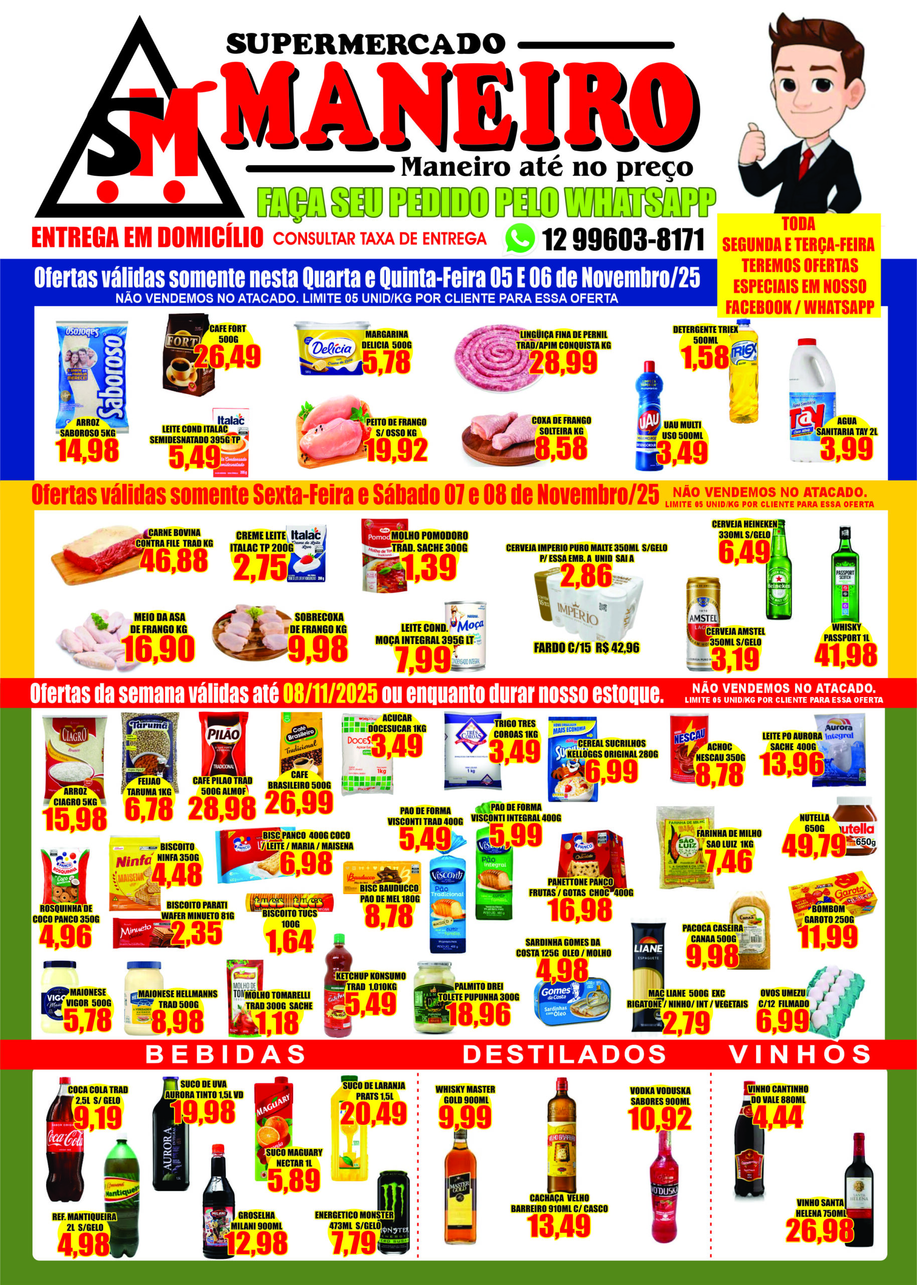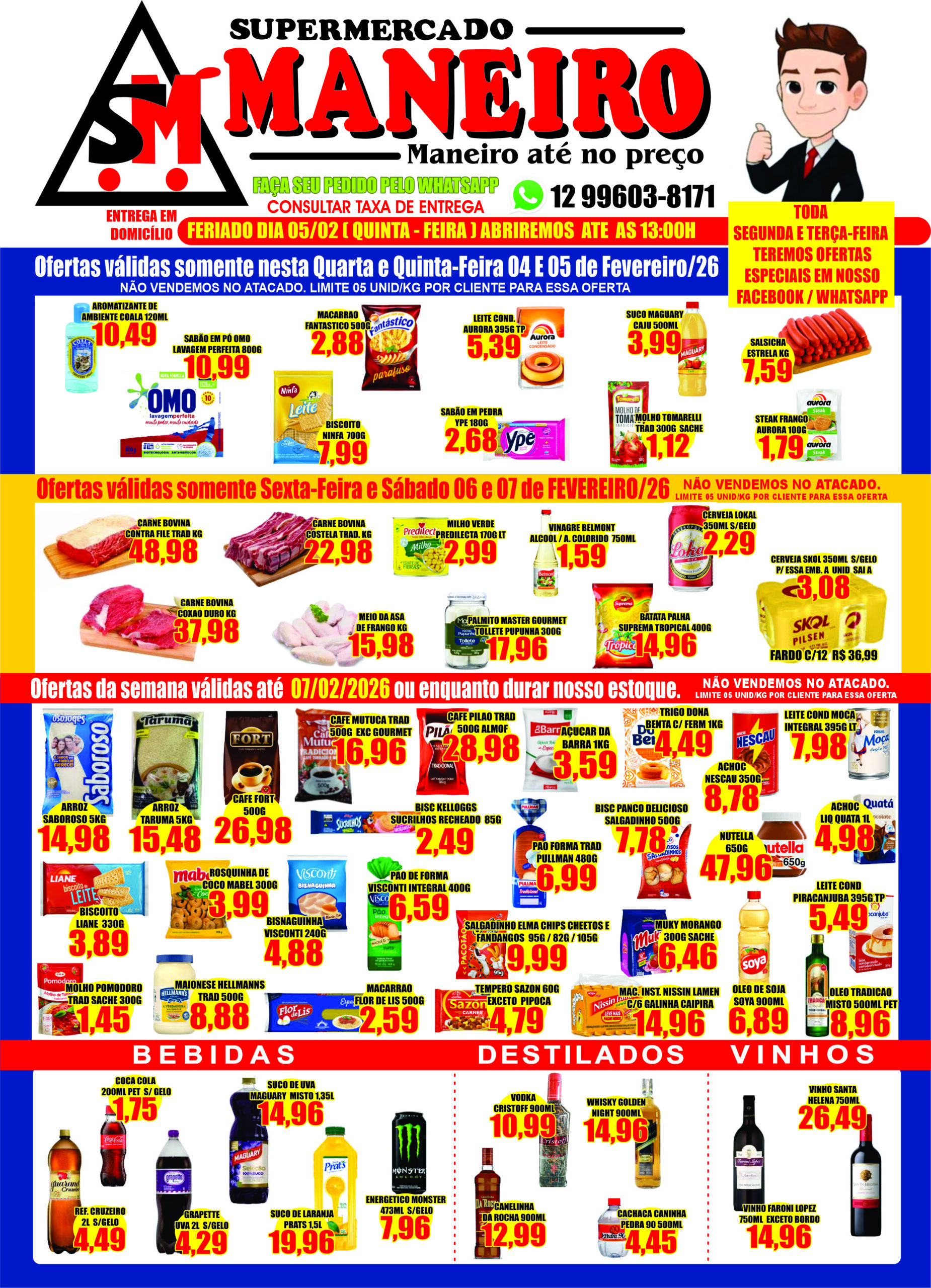 Nossos clientes são a razão da nossa existência. Por isso, o Supermercado Maneiro se dedica a oferecer um atendimento personalizado, produtos de qualidade e um ambiente acolhedor, pautados em valores como amor, respeito e compromisso com a excelência. Venha conhecer o Supermercado Maneiro!