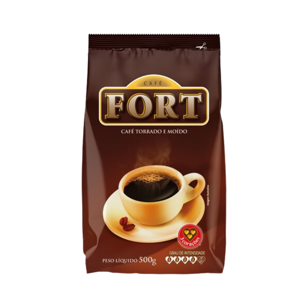 Com sotaque de Minas Gerais, o Café FORT 3 Corações conquistou o paladar brasileiro nas regiões Sul e Sudeste. FORT 3 Corações é a opção para o preparo de um delicioso e saboroso café para sua família e amigos. Com sabor e aroma resultantes de um processo de torrefação de grãos, FORT apresenta uma bebida encorpada e que agrada a diferentes paladares. Ingredientes: 100% Café Torrado e Moído.